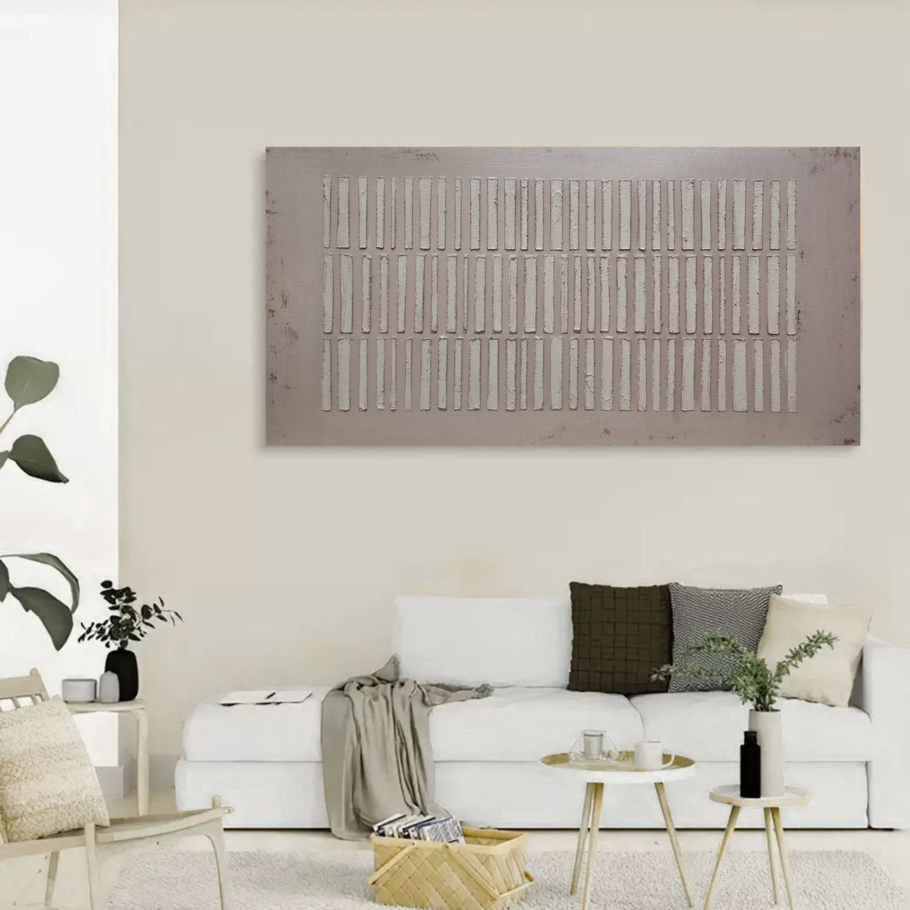 Embodying the essence of Wabi-Sabi Wall Art, this piece features a simple yet textured design with a subtle, monochromatic color palette. The understated tones and organic textures highlight the beauty in imperfection, creating a tranquil, balanced atmosphere. Ideal as abstract wall art for the living room or abstract wall decor, this painting complements minimalist and modern spaces with its refined simplicity. The tactile surface and muted colors make it a sophisticated abstract wall painting, perfect for those who appreciate the depth of natural textures and a serene, uncluttered aesthetic in their decor.