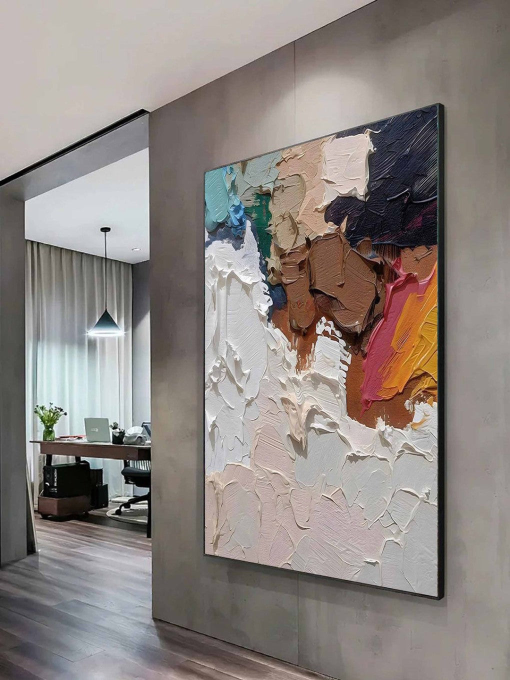 This vibrant, hand-painted piece is inspired by the bold beauty of modern art, designed to infuse any space with energy and color. Perfect for wall art in your living room, bedroom, or office, this colorful artwork complements modern home decor while adding a unique, artistic touch to your walls.